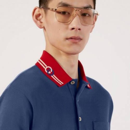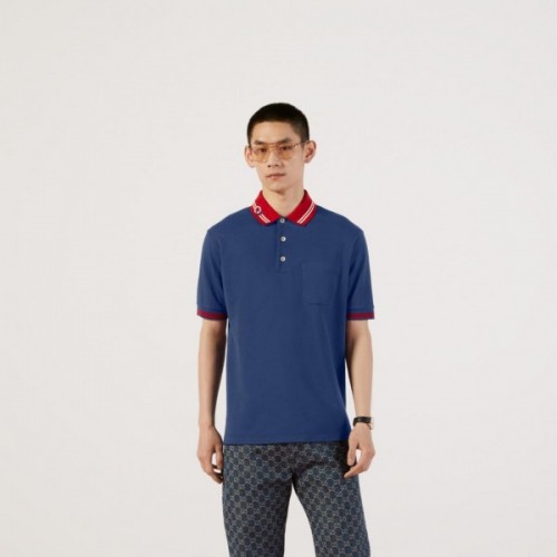 GUCC I POLO PREMIUM NAVY BLUE POCKET TSHIRT 1249